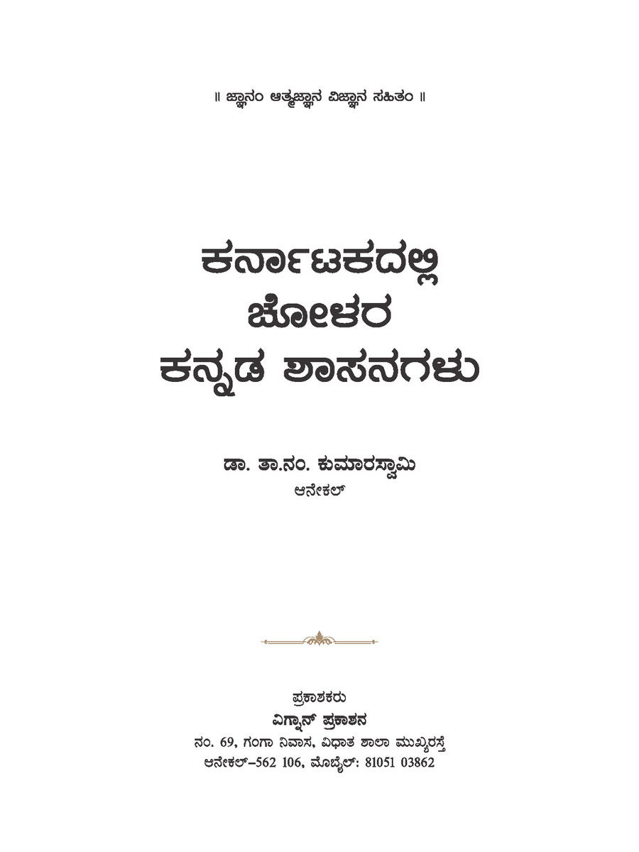 ಕರ್ನಾಟಕದಲ್ಲಿ ಚೋಳರ ಕನ್ನಡ ಶಾಸನಗಳು - ಒಂದು ಅಧ್ಯಾಯನ